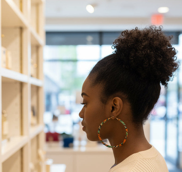 Des bijoux afros uniques, conçus à la main par une créatrice talentueuse en Afrique, entre savoir-faire traditionnel et touche moderne.